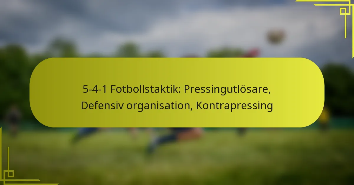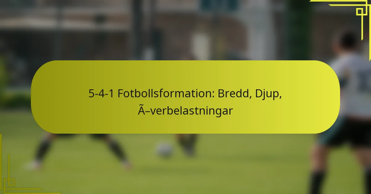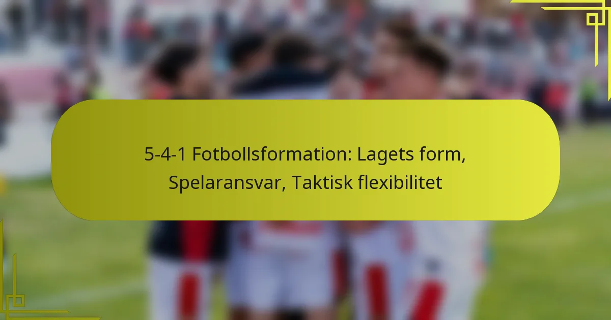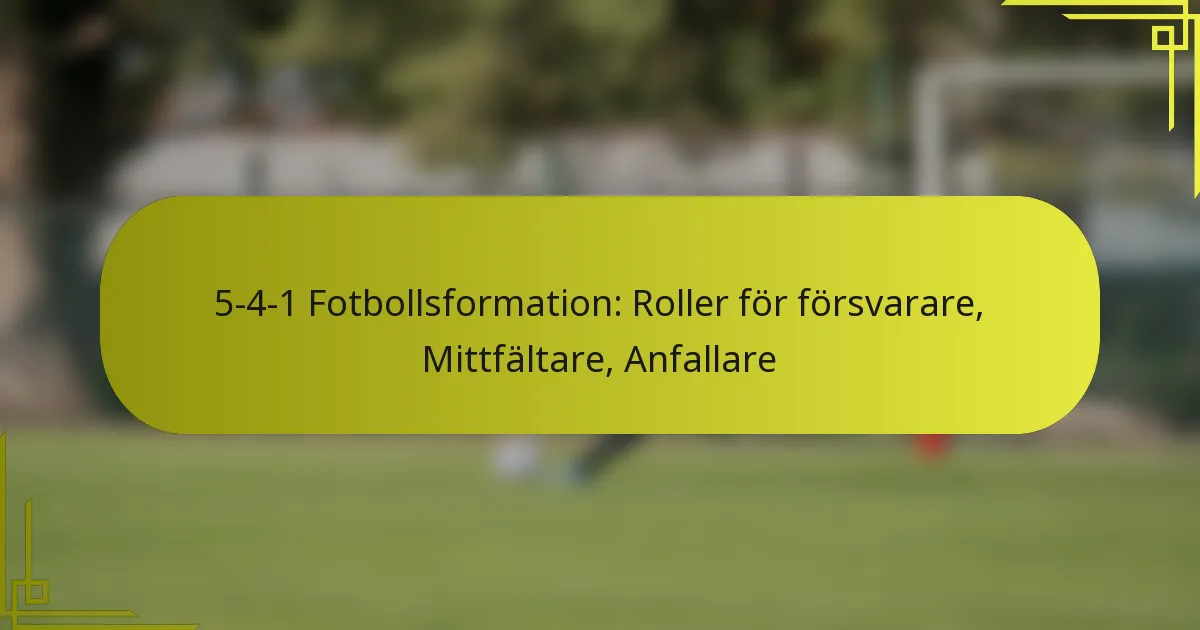 5-4-1-formationen är känd för sin defensiva soliditet, eftersom den använder fem försvarare som effektivt kan täcka backlinjen. Denna arrangemang möjliggör en kompakt form, vilket gör det svårt för motståndarna att bryta igenom. Mittfältarna ger ytterligare stöd, vilket säkerställer att laget förblir organiserat och snabbt kan reagera på hot.