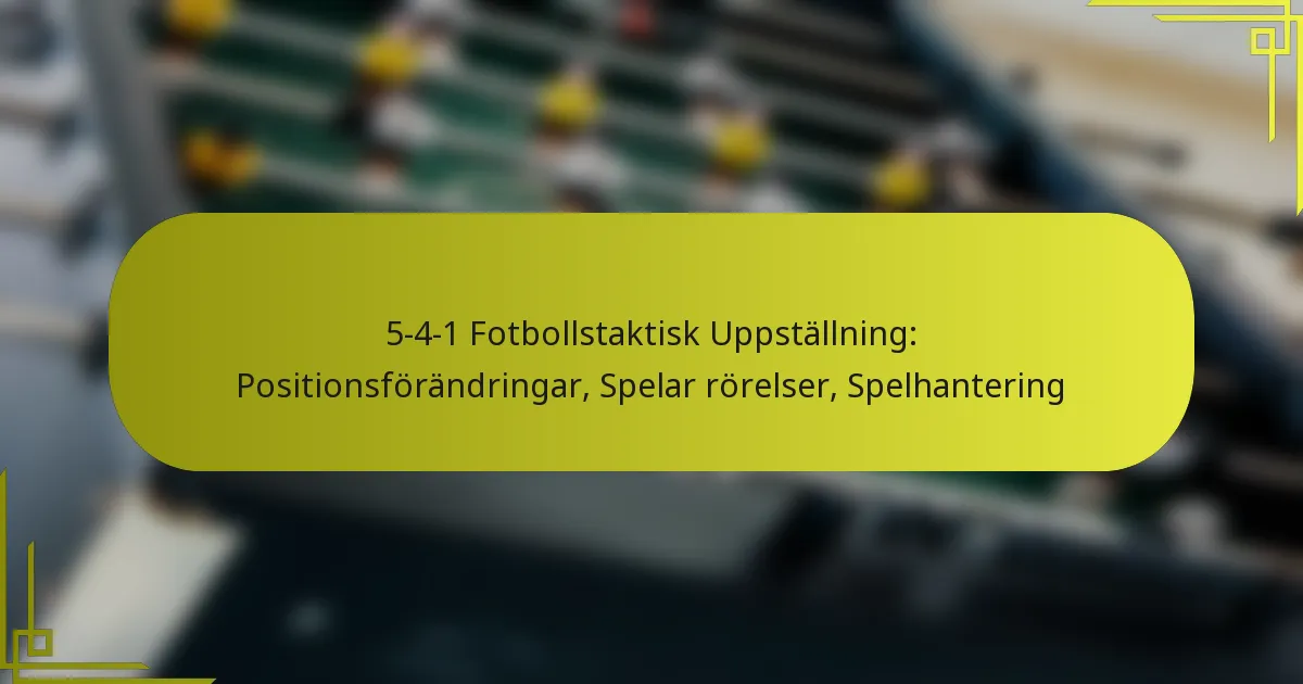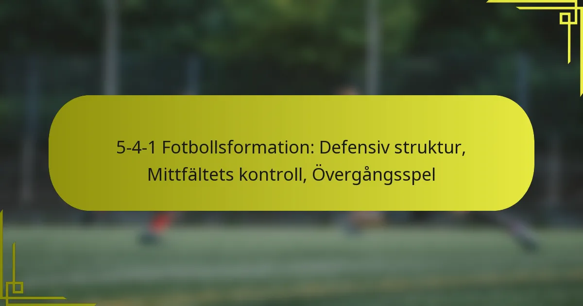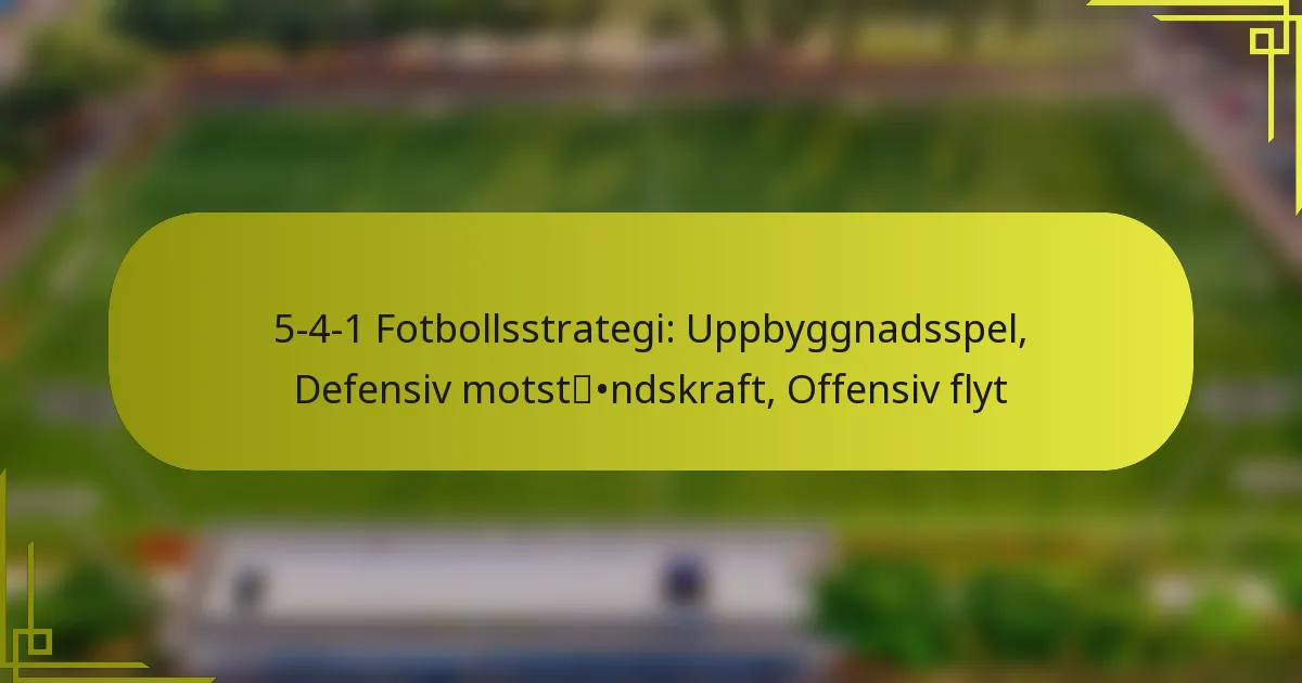5-4-1-formationen är känd för sin defensiva soliditet, eftersom den använder fem försvarare som effektivt kan täcka backlinjen. Denna arrangemang möjliggör en kompakt form, vilket gör det svårt för motståndarna att bryta igenom. Mittfältarna ger ytterligare stöd, vilket säkerställer att laget förblir organiserat och snabbt kan reagera på hot.