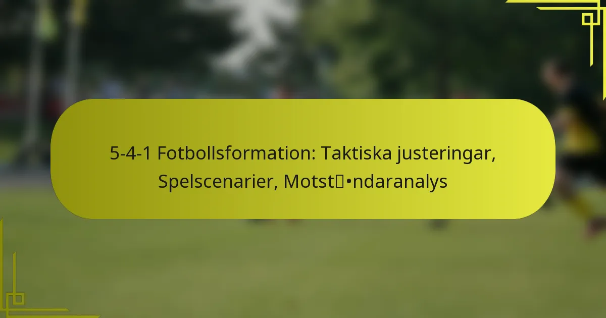 Justeringar under matchen för 5-4-1-formationen kan inkludera att skifta till en mer offensiv stil genom att flytta upp ytterbackarna högre på planen eller ändra mittfältsstrukturen för att skapa numeriska fördelar. Tränare bör bedöma spelets flöde och vara beredda att modifiera spelarroller för att utnyttja svagheter i motståndarens försvar eller för att förstärka lagets defensiva soliditet.